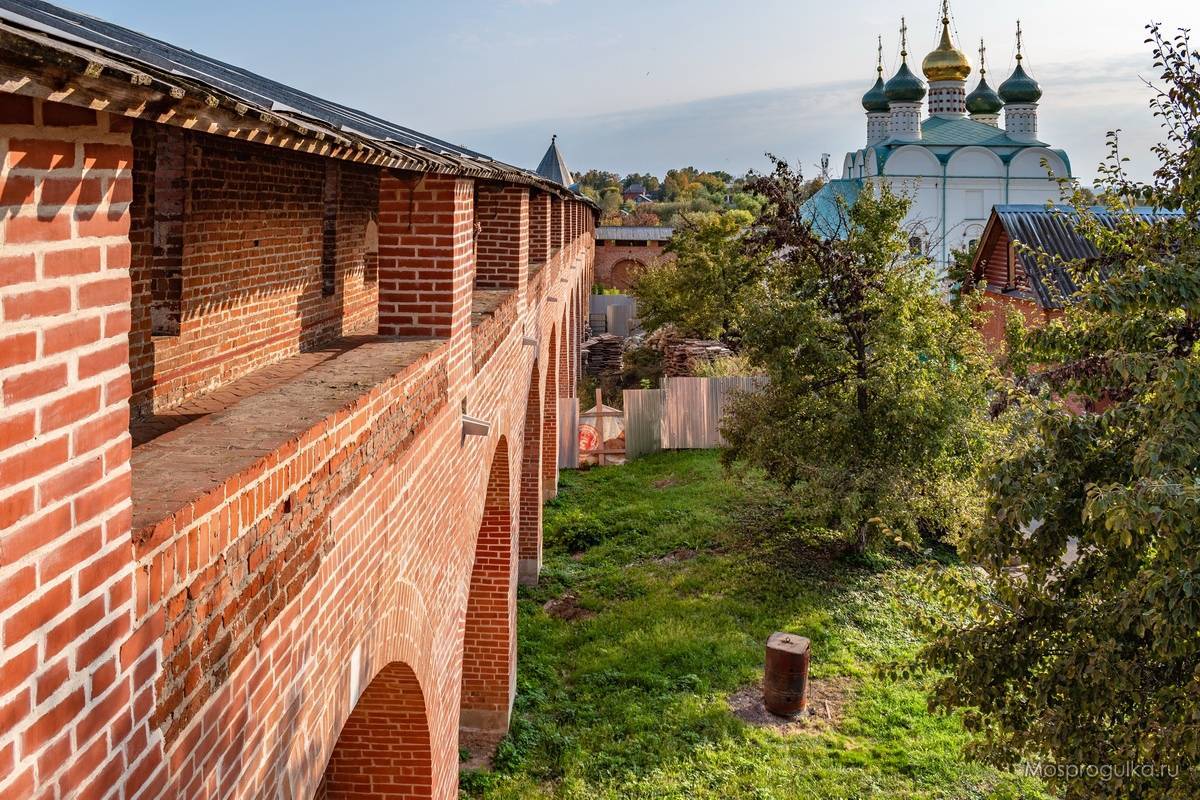 Со стены открывается великолепный вид на внутреннюю территорию крепости и расположенные на ней достопримечательности: Иоанно-Предтеченский собор, Никольский собор, здание Зарайского духовного училища и другие.