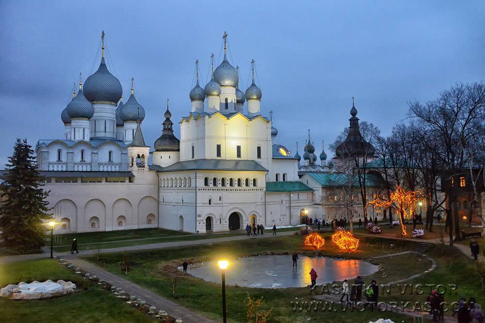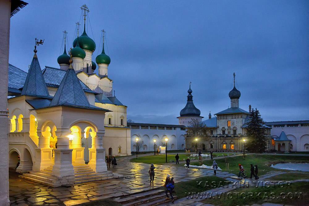 К Ростовскому Кремлю мы прибыли, когда уже стемнело, ровно за полчаса до закрытия кассы и за пять минут до начала дождя. Моя семья категорически отказалась выходить из машины, и осталась неистово ждать, улыбаясь, предлагая мне зонтик. Какой зонтик? Я что, в зубах его держать буду?