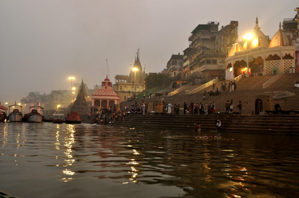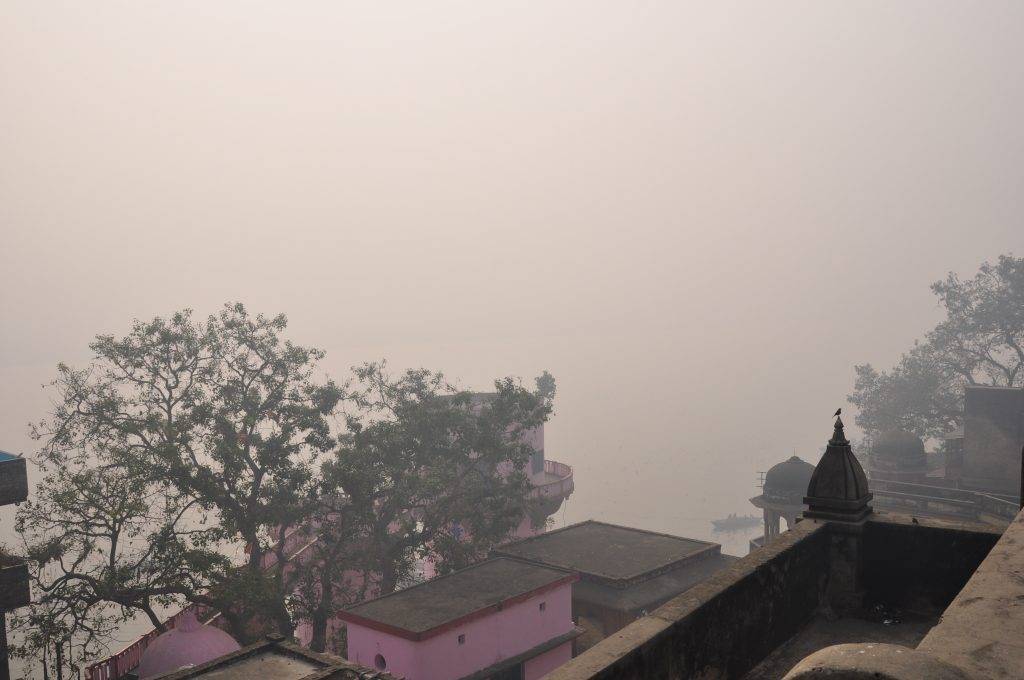 Дымка..ничего не видать…но если всмотреться, то можно в правом нижнем углу увидеть лодку = Гангу