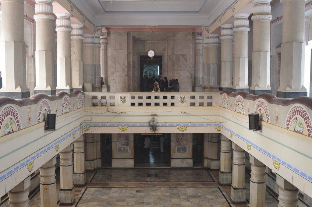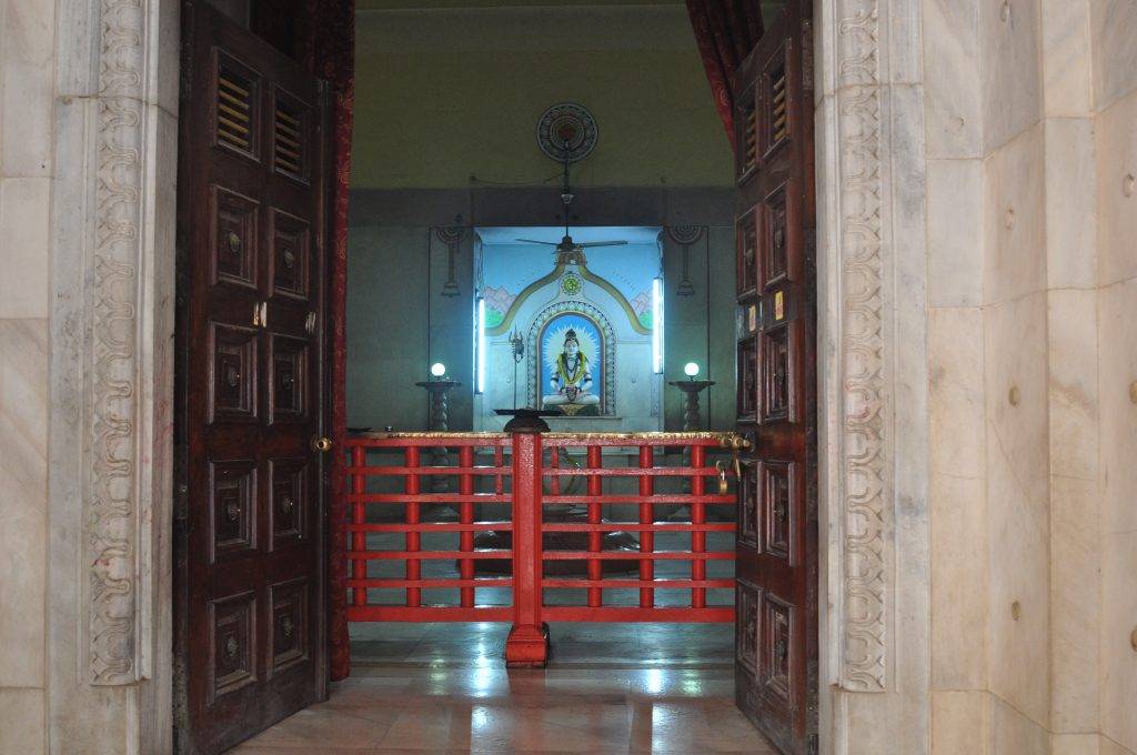 На одном из фасадов здания в нишах можно увидеть изображения богов Парвати и Ганеша, вырезанные из камня. Резные деревянные изображения в зале украшены серебром и ярко расписаны в традиционном индийском стиле.
