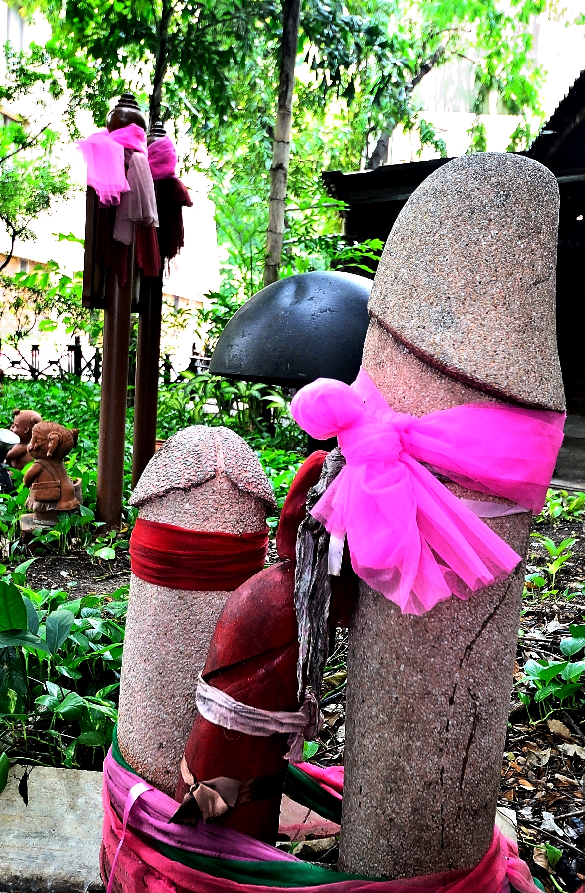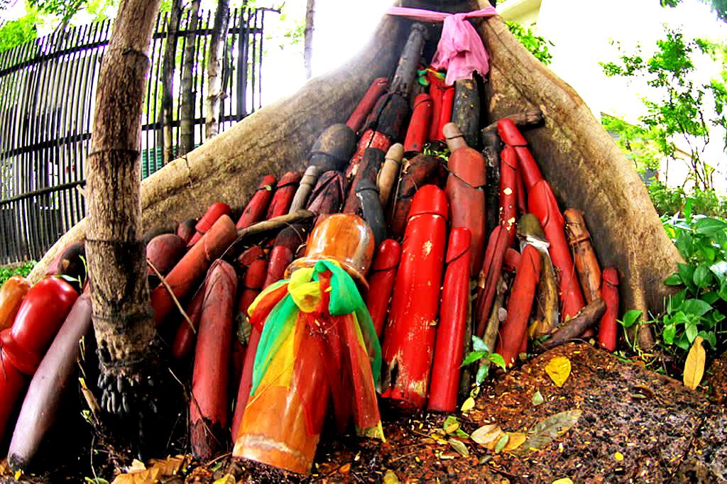 В случае исполнения заветного желания женщина по обычаю возвращается и оставляет ещё один фаллос в храме в знак благодарности. Большая часть современного буддизма имеет свои корни в древнем индуизме Индии, и многие духовные ритуалы и символы являются общими для обеих религий. Эти фаллосы («лингамы») ведут своё происхождение от индуистского бога Шивы и продаются на многих рынках, являясь амулетами удачи или защиты.