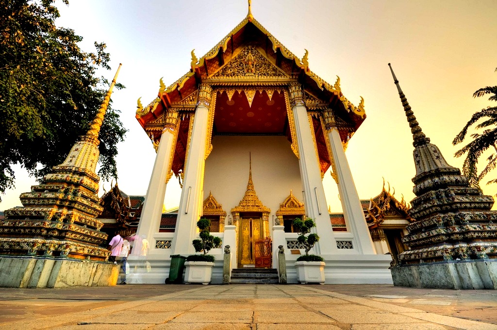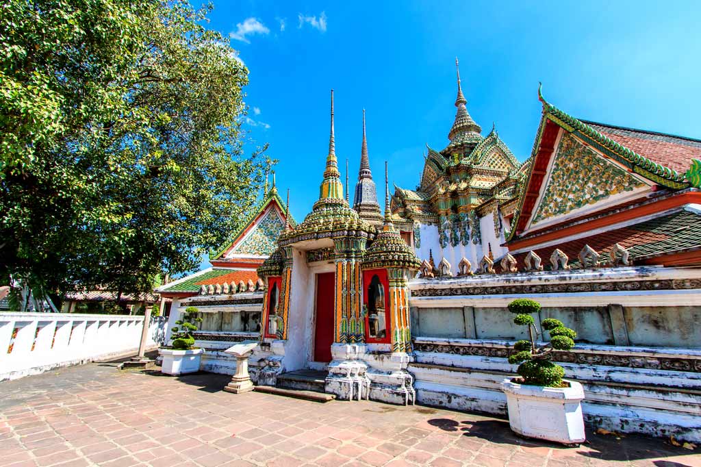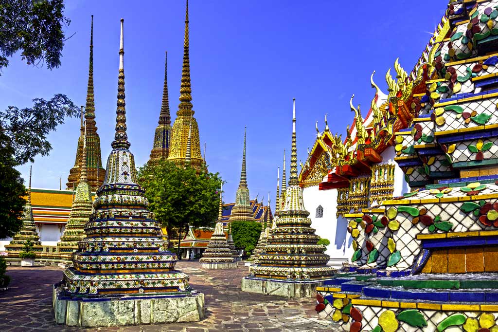 Посещение современной столицы Таиланда невозможно представить без экскурсии в знаменитый буддийский монастырь Ват Пхо, находящийся в центре Бангкока на острове Раттанакосин. Этот сооружение называют ещё Храмом Лежащего Будды, но в дословном переводе, его название звучит, как Храм Будды, ожидающего прихода вечной нирваны. Ват Пхо старейший храм Бангкока, возведённый еще в XII веке. Именно здесь генерал Чакри в 1782 году объявил себя королём (Рама I) и основал новоиспеченную династию правителей Таиланда. Им был отдан приказ о расширении древнего монастыря и возведении ступы, покрытой зелёной мозаикой, изображающей Будду. Она была воздвигнута в кратчайшие сроки и высота её составила около 40-а метров. Далее, по приказам наследующих королей величественные ступы продолжали воздвигаться – белая, жёлтая и голубая. Они символизируют четыре первые королевские династии Чакри.