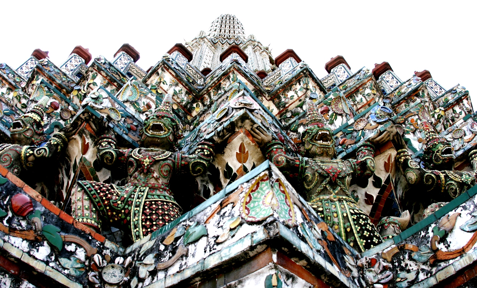 Вероятно, много веков назад, когда Сиаму приходилось отражать бесконечные набеги своих воинственных соседей, предусмотрительные люди покрыли изображение Будды известковым раствором, превратив статую из золотой в каменную, чтобы враги не обратили на нее внимания. Эта хитрость вполне удалась. Более семи столетий Будда носил эту «одежду», и если бы не случайность, его секрет, вероятно, так бы и не был разгадан. Также из необычных храмов Бангкока следует отметить удивительную оплетенную драконом башню Ват Сампхран и Храм Фаллосов, или Храм богини Табтим.