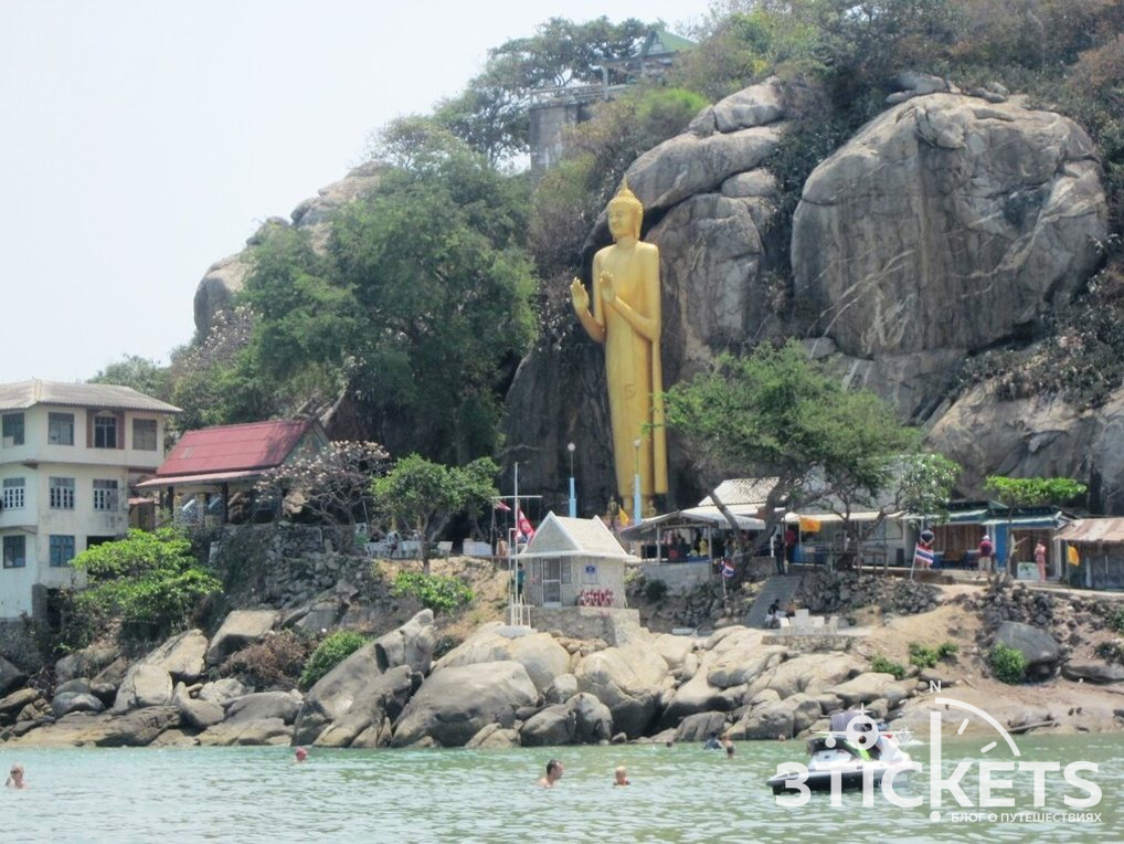- Khao Takiab (Гора обезьян) – Гора довольно массивная, высота горы 273 метра, гора напоминает собой отдельный город, если вы надеетесь увидеть там стада обезьян – то их там нет… на вершине горы находится храм Wat Khao Lat (архитектура храма выполнена в китайском стиле). Также на горе есть 20-ти метровая статуя Будды и несколько площадок для обзора.