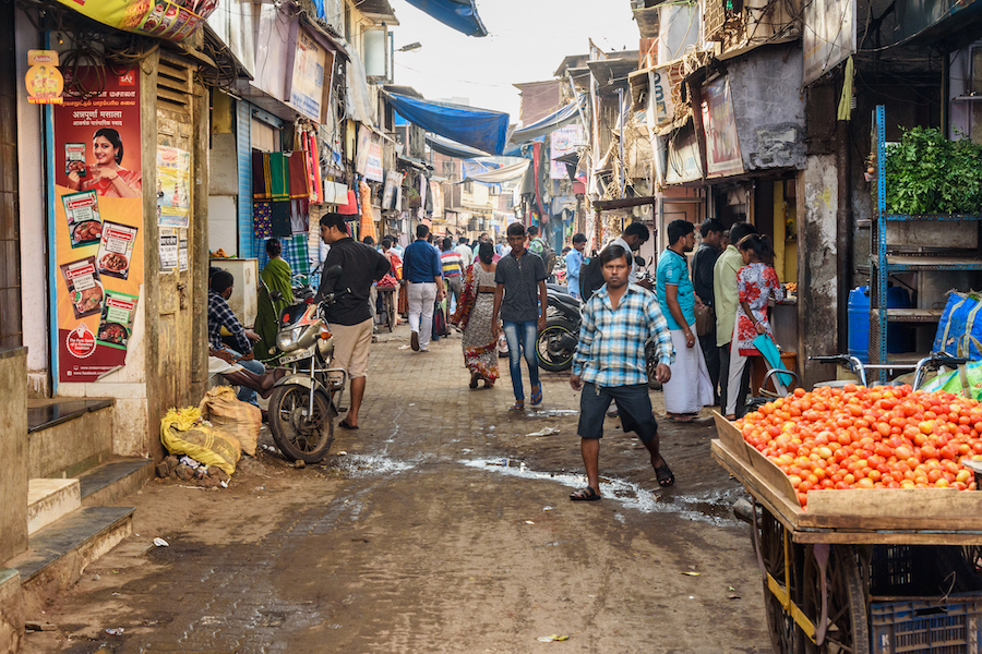 Трущобы Дхарави (пригород Мумбаи) — одно из самых густонаселенных мест в мире (около 1 млн жителей на 2,1 кв. км площади)