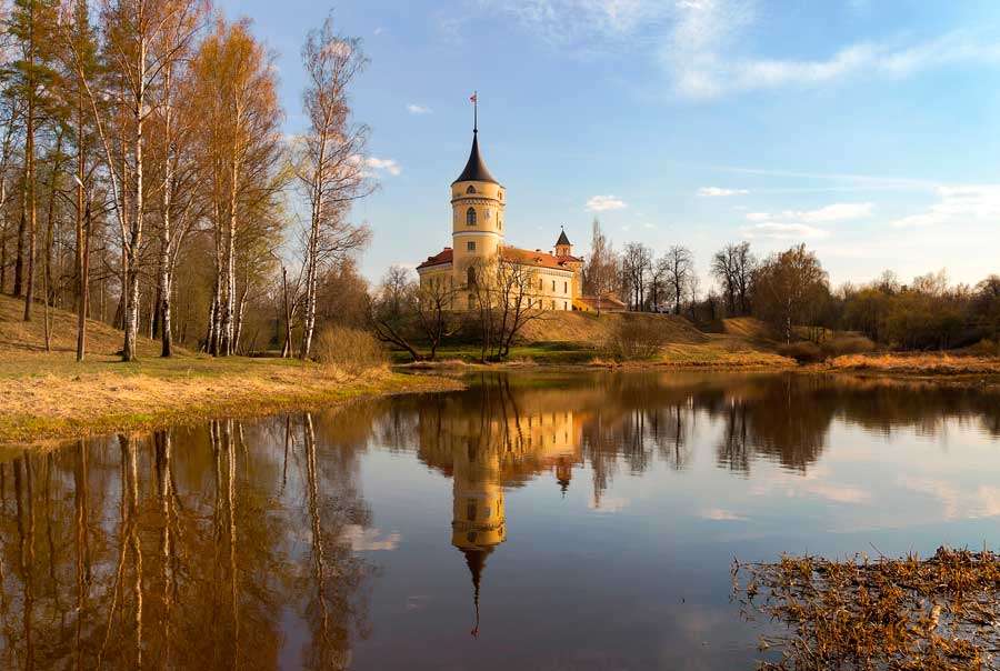 Или другое его название – замок Бип. Небольшая крепость с двумя башнями и парком была построена в 1797 году по приказу Павла I. Этот замок император хотел видеть «потешным», он возводился исключительно для увеселительных мероприятий и приема гостей. Несмотря на это, крепость числилась как военная, все потому что была оснащена 28 артиллерийскими орудиями.
