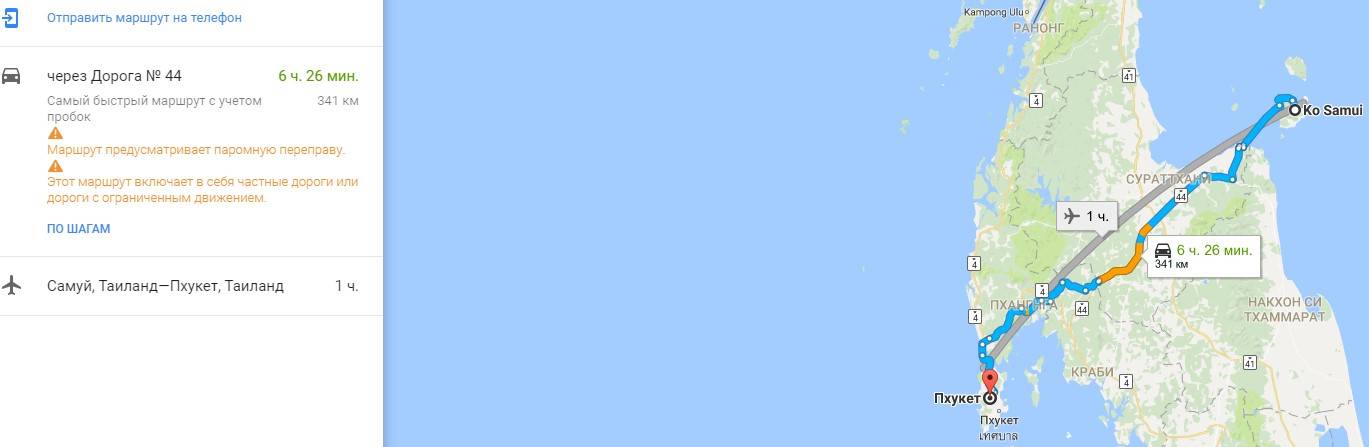 Добраться до Самуи проще всего с Пхукета. Это ближе, чем Бангкок. Расстояние между двумя островами по прямой составит 251 километр. Если вы поедете по суше и поплывете по морю, вам потребуется 339 километров. На первый взгляд, немного, но есть некоторые проблемы. Пхукет связан с материком мостами, но Самуи находится слишком далеко от побережья. Так что тем, кто не любит самолеты, придется пересесть на другие виды транспорта.