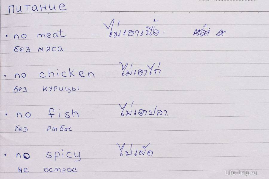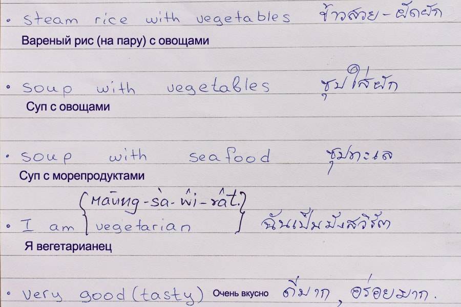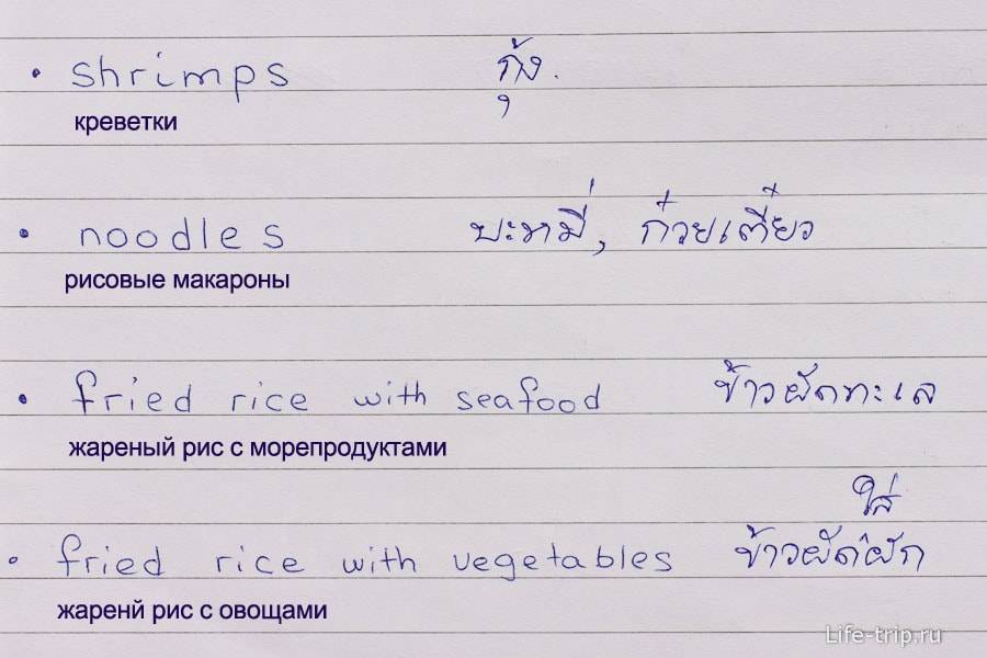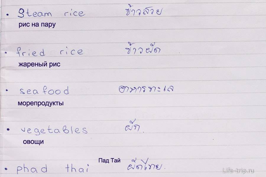 Примеры тайских слов