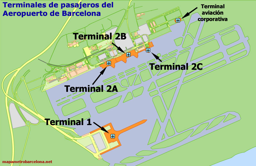 Международный аэропорт Барселоны (Aeroport de Barcelona — el Prat) расположен примерно в 12 км юго-западнее центра Барселоны в муниципалитете Эль-Прат-де-Льобрегат. Это второй по величине международный аэропорт Испании после аэропорта в Мадриде. Инфраструктура аэропорта располагает тремя взлетно-посадочными полосами и двумя терминалами. Терминал 1 (Т1) и Терминал 2, состоящий из трех отдельных зданий Т2А, Т2B и T2C. Расстояние между Терминалами Т2А и Т2B можно преодолеть пешком за 5 минут. А вот между терминалами Т1 и Т2 — 4 км. Следовательно, для перемещения потребуется бесплатный шаттл. При планировании следует учесть, что на ожидание шаттла и поездку до терминала может уйти до 30 минут.