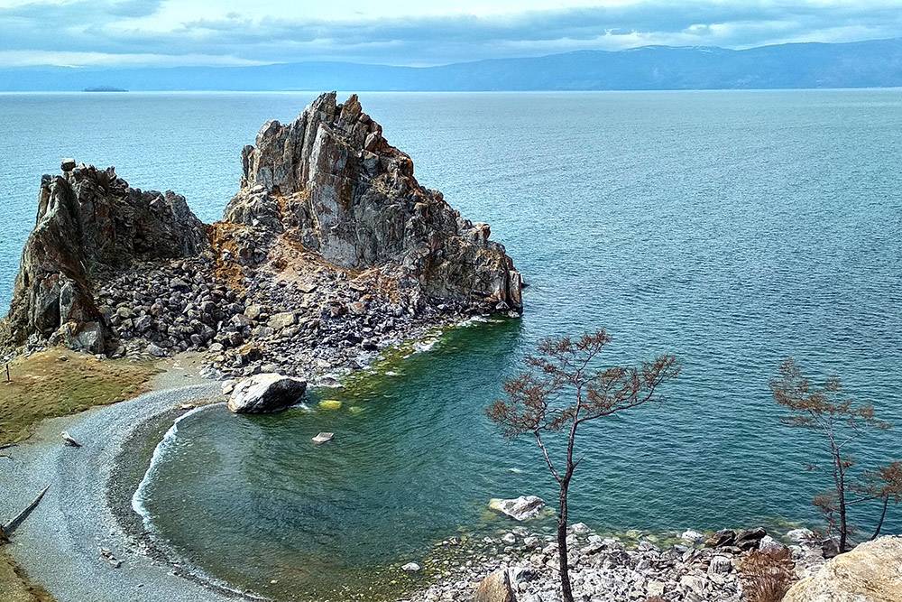 Мыс Бурхан, или скала Шаманка. Летом здесь можно покататься на катамаранах или байдарках вокруг скалы