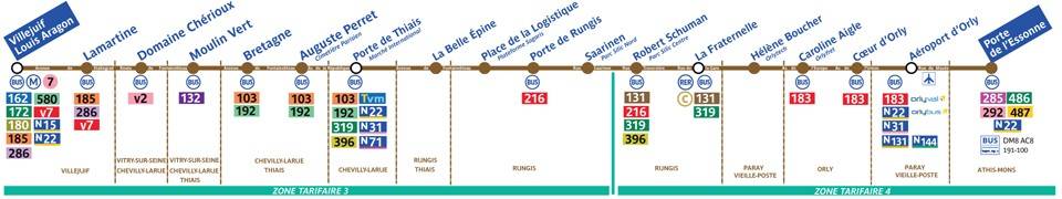 2) Автобус № 183 отходит от Орли-4 (Южный порт) у выхода 48а с остановки 4, чтобы отвезти пассажиров к остановке подземки Porte de Choisy на линии 7.