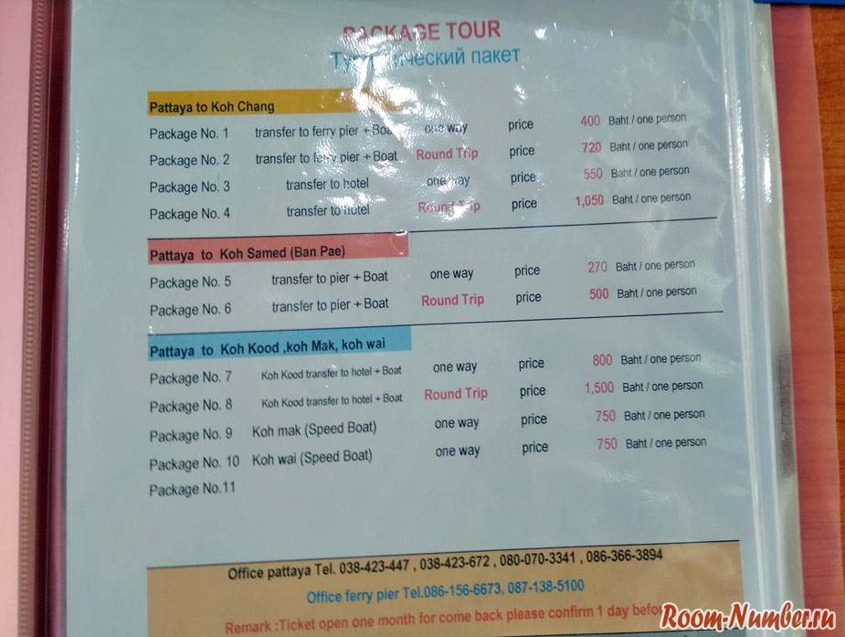 Вот цены на трансфер Паттайя — Ко Чанг в офисе 35 Паттайя групп: