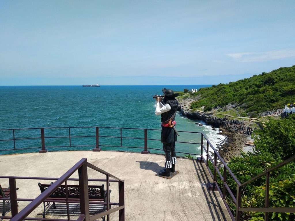 На Сичанге есть китайский храм, так же можно подняться от него по ступенькам на гору где есть отпечаток ноги Будды, или доехать на тук-туке или байке и пощадить свои ноги. Помимо храма есть смотровая площадка с пиратом, большой желтый Будда и пляж Taam Pang, единственный на острове где можно купаться, кстати он был почти пустой когда мы приехали и цены там далеко не такие страшные как на Ко Лане. Порция обжареного риса с креветками 60 бат, бутылка пива 0.6 всего 80-90 бат. Дно на пляже песчанное, вода прозрачная, купаться комфортно можно даже в сильный отлив. Все достопримечательности запросто можно осмотреть за день, ещё и время останется поваляться на пляже.