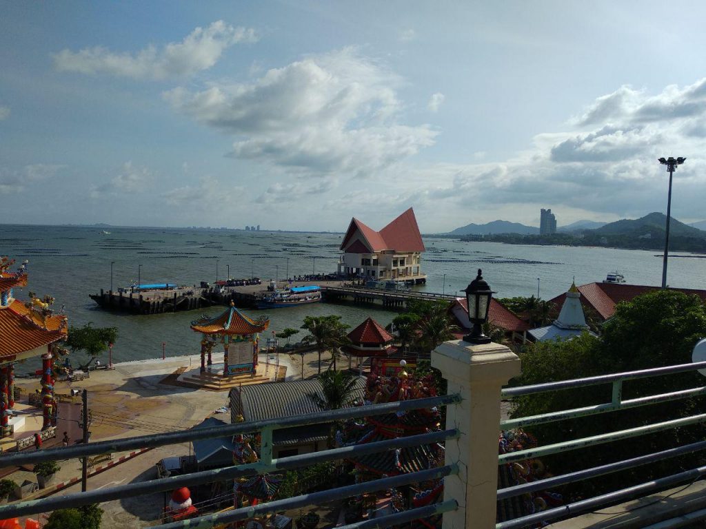 Первым делом встаём пораньше и садимся на белый тук-тук который едет по Сукхумвиту в сторону Бангкока из Паттайи. Белый тук тук стартует от конечной синего тутука на наклуа вот здесь. Едет от примерно 50-60 минут до Сирачи, а ходит каждые минут 10-15 в зависимости от скорости заполнения мест, стоит 20 бат за человека. Так же можно самостоятельно доехать на байке. От конечной белого тук-тука в Сираче едем на мотобайк такси за 40 бат за двоих и за 3-5 миунт доезжаем до пирса Ко Лой, от которого уходит паром на Ко Сичанг. До Пирса можно дойти пешком минут за 15. В будке покупаем билет за 50 бат и садимся на паром. Паром едет минут 40 и уходит примерно раз в час. Если приехали раньше чем надо, рядом с пирсом находится парк с китайским храмом, в который можно подняться. Паромы обычно ходят раз в два часа, я рекомендую ехать на 8 часовом, чтобы на него точно успеть надо выезжать на белом туктуке примерно в 6:40 утра. В последние два посещения мы опоздали на 8 часовой паром, но расписания паромов на будке уже не было и нам сказали, что паром ходит раз в час и мы отлично уехали на 9 часовом.