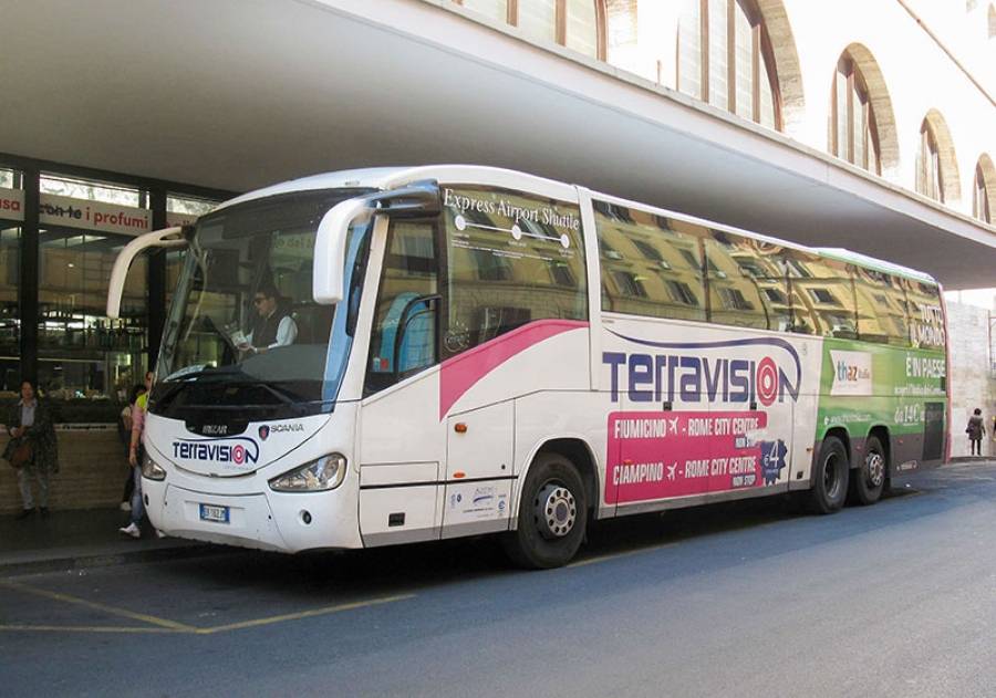 Остановка автобуса Terravision находится у Терминала 3 (Bus Stop 14). В пути проведете около 55 минут. Отправление примерно каждые полчаса с 5.35 утра до 23.00 ночи.