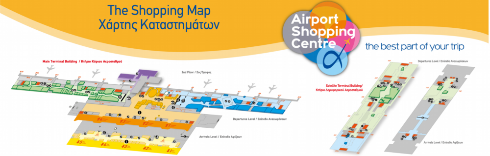 Территория авиаузла включает в себя 2 пассажирских терминала: основной и вспомогательный (принимает, в основном, рейсы лоукостеров). Терминалы сообщаются между собой подземным переходом с движущимися дорожками. Главный терминал делится на 2 зоны: «A» обслуживает рейсы в страны, не состоящие в Шенгенском соглашении; «B» обслуживает рейсы в страны Европы и внутри Греции.