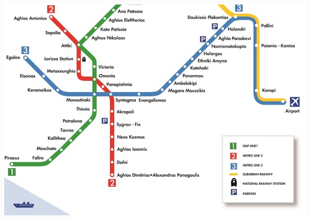 Если вам нужно добраться до порта Пирей, то на метро вы едете до станции Монастираки и переходите на зеленую ветку и далее до последней станции Piraeus. В планах развития метро в Афинах скоро будет прямая ветка из аэропорта в порт. Время в пути – около часа.