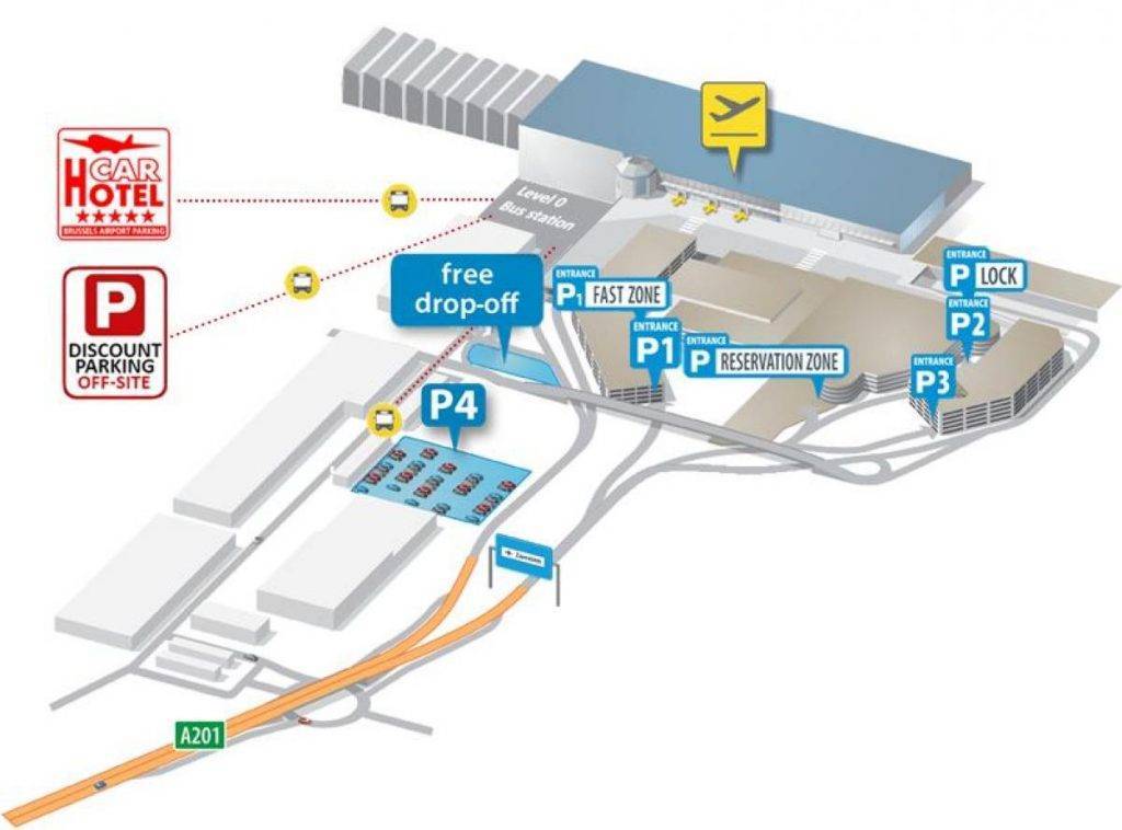 - компания NV Interparking SA (тел.: +32 2 715 2110) обслуживает три парковки с прямым доступом к терминалу: P1 для краткосрочного использования, бюджетную P2 и долгосрочную P3.