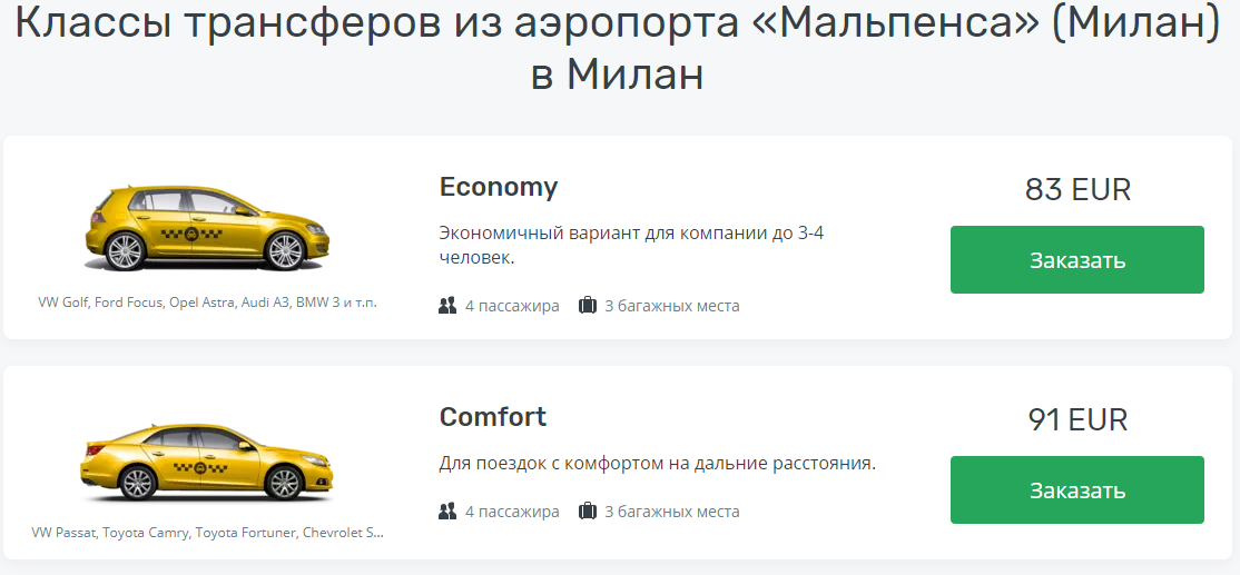 Конечно, это самый дорогой способ добраться до Милана. Стоимость услуги 90 евро. Но, если вы прилетели ночью, то другого способа доехать до Милана нет. Хотя, вру. Есть еще 2 способа. О них чуть ниже.