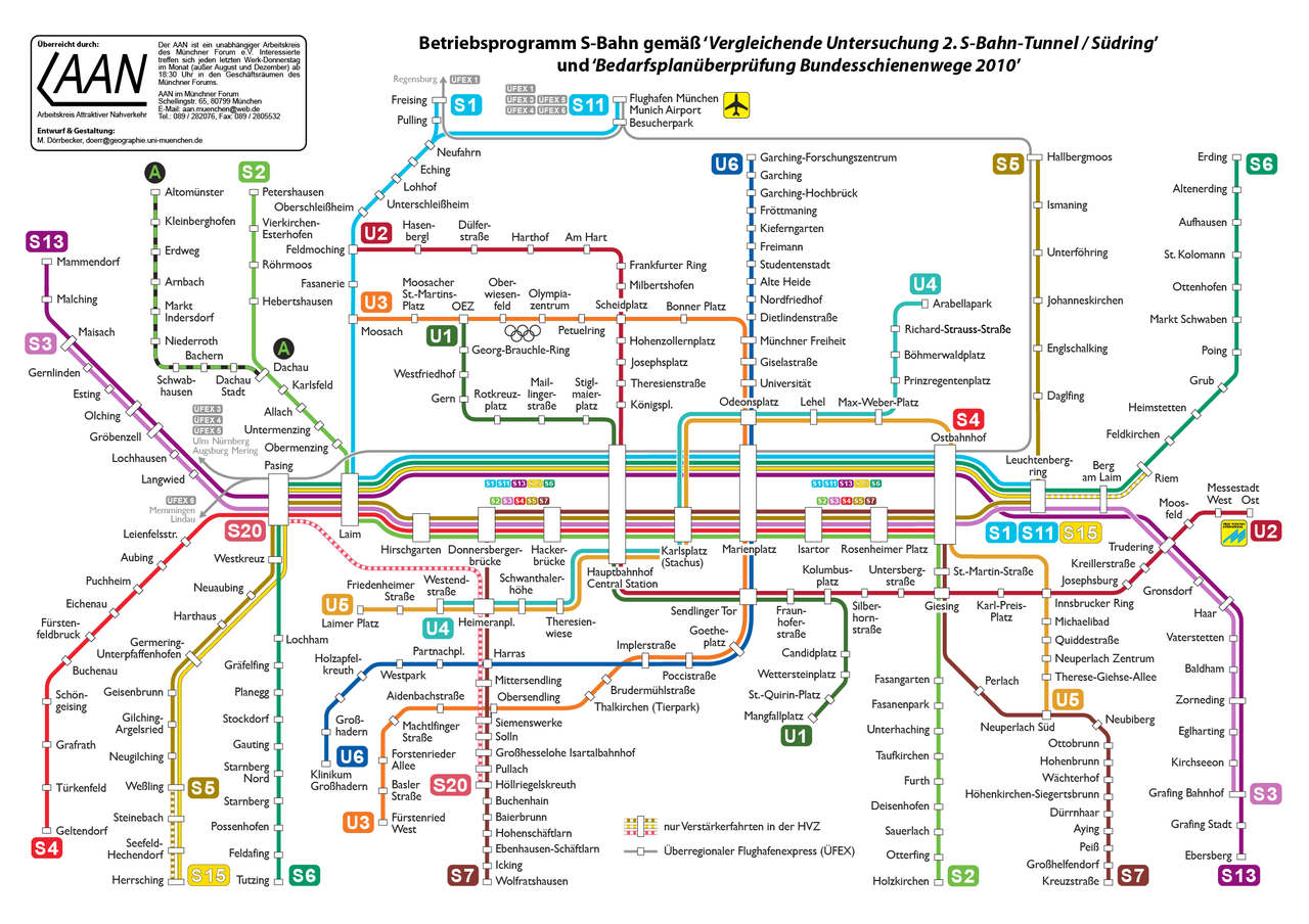 Обе линии проходят через центральные станции города: главный вокзал, Мариенплац, Карлcплац. Если вы едете в центр Мюнхена, то вам практически нет никакой разницы на какую линию сесть — Вы в любом случае окажетесь на центральных станциях.