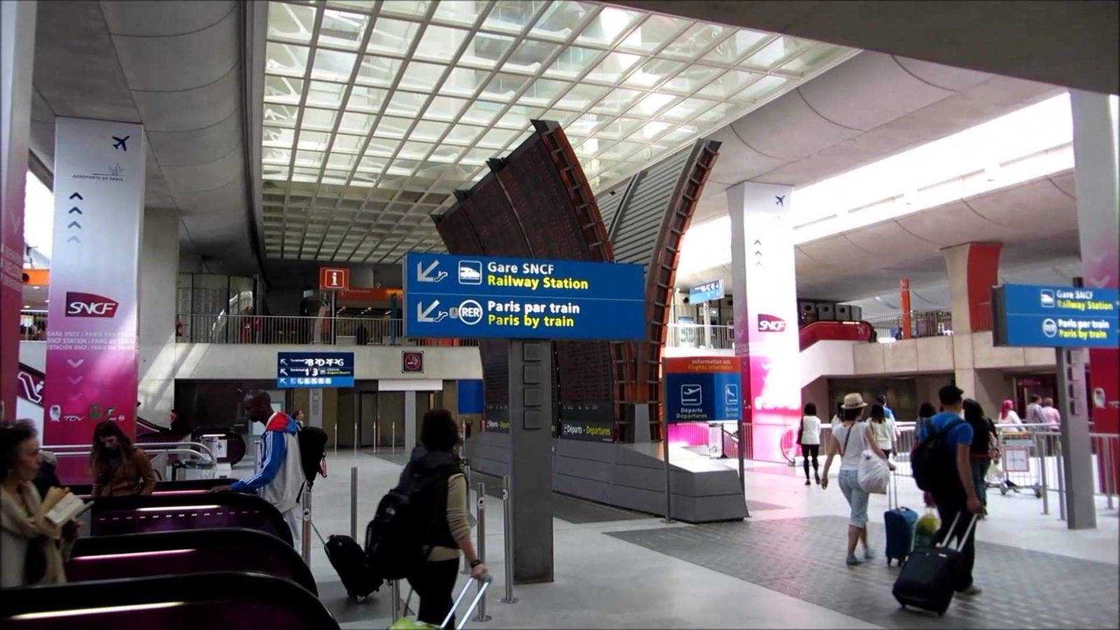 Следуя информации на указателях внутри аэропорта, отыскать железнодорожные пути достаточно легко. Просто запомните, что аббревиатура Gare SNCF означает Ж/Д вокзал, и не ошибетесь, идя в указанном направлении.