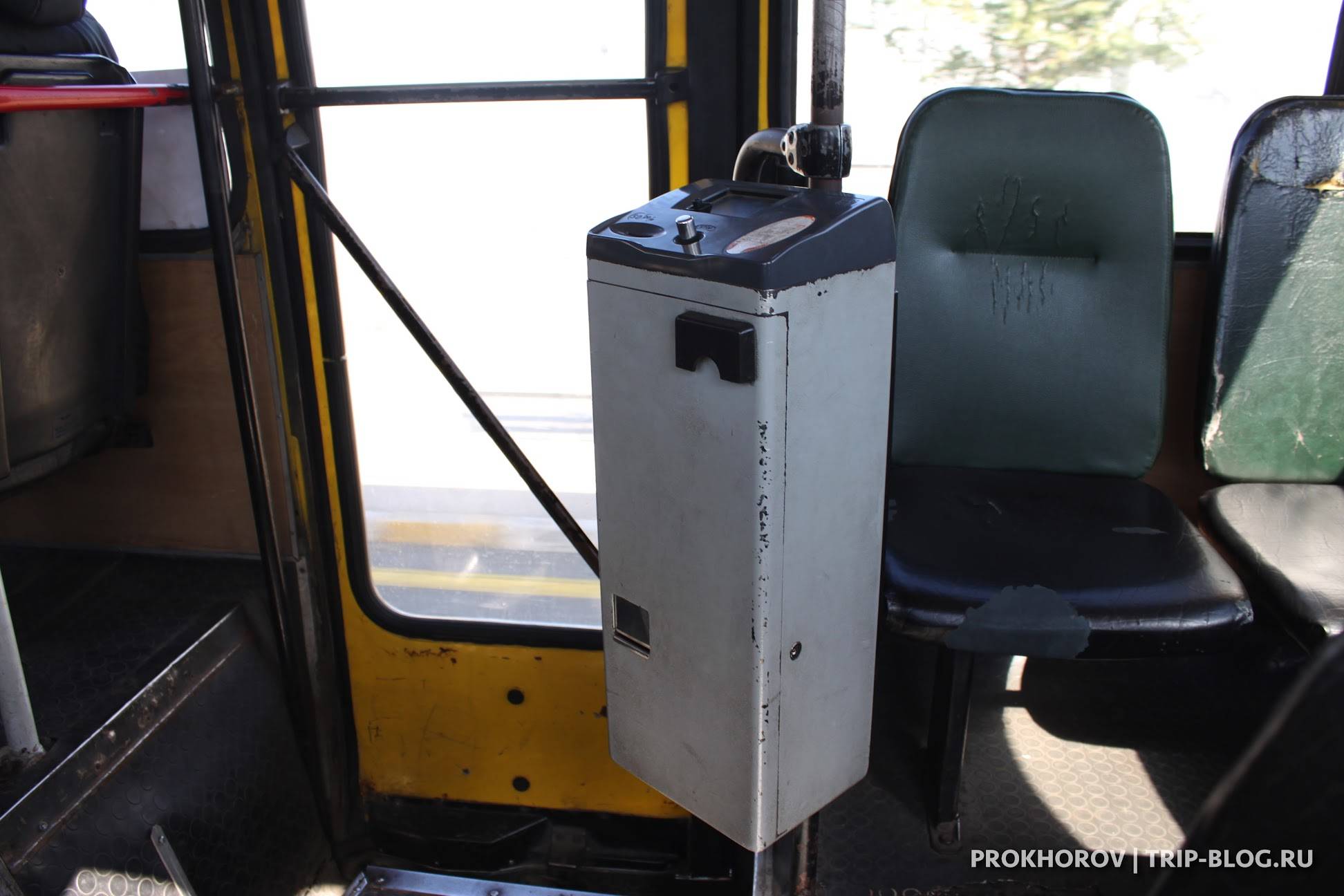Проезд стоит 0,5 лари. В автобусе есть автомат. Туда нужно бросить монетки, и он выдаст вам нужное количество билетов.