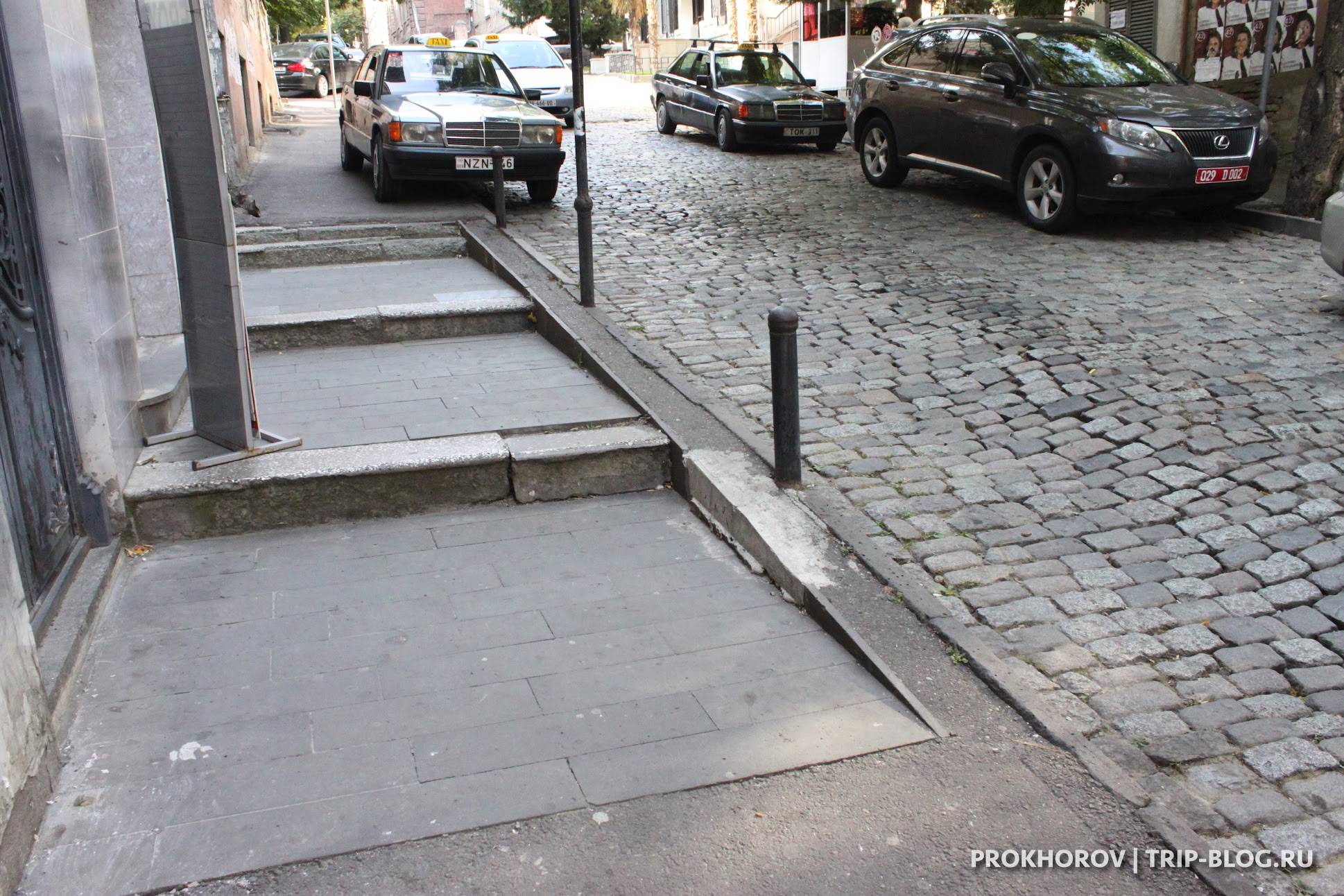 Если ехать с чемоданами, при этом плохо ориентироваться в Тбилиси, а главное, ехать не одному, то лучше заказать такси или трансфер. Его стоимость в Грузии не такая высокая, зато привезут прямо по указанному адресу. Всё-таки, переходить дорогу с чемоданами в Тбилиси будет сложновато. Пешеходов здесь совершенно не уважают. Плюс, сами тротуары могут быть довольно узкими.