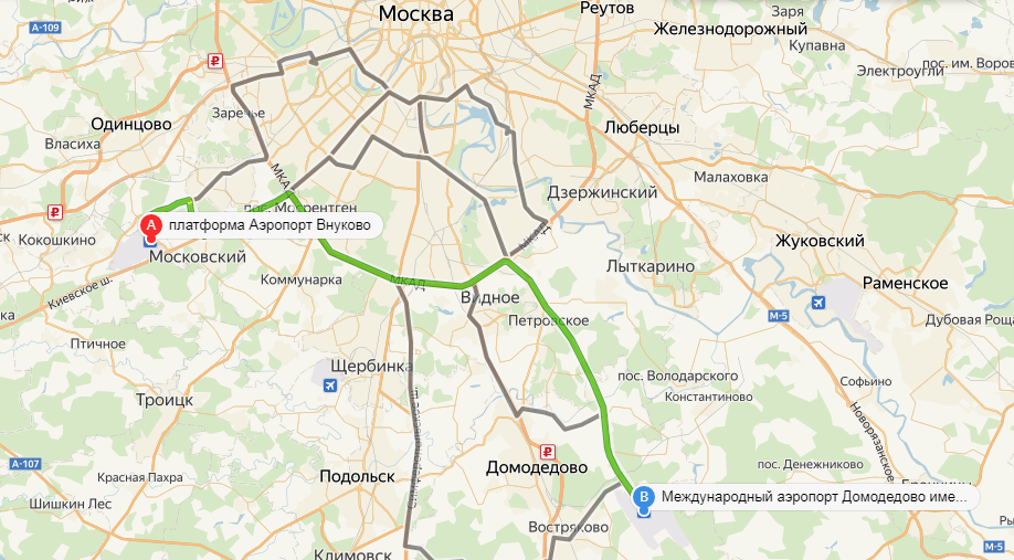Время в пути от Киевского вокзала до Внукова – около 40 минут.