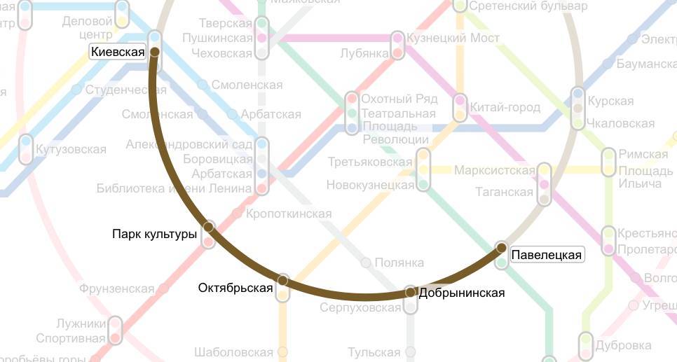 - Далее в метро вам нужна красная ветка и остановка Парк культуры. Затем пересаживайтесь на кольцевую коричневую ветку, проезжайте еще несколько остановок по направлению к станции Октябрьской. Ваша конечная – Повелецкая.