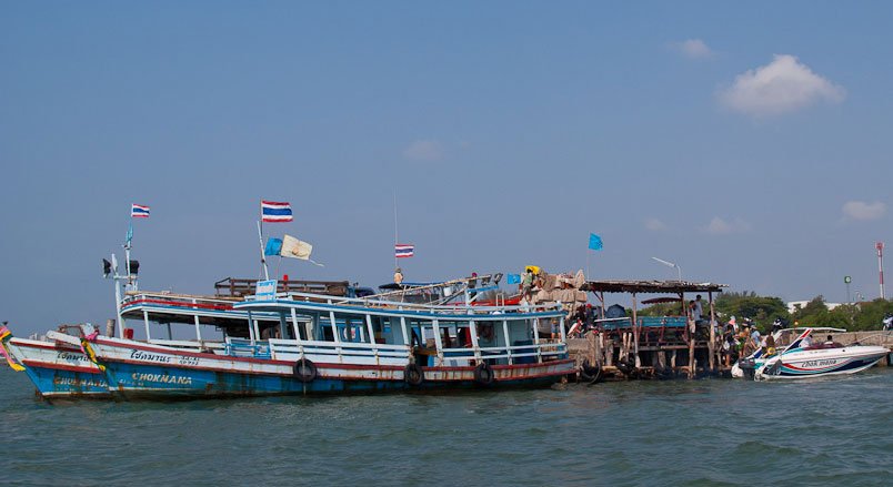 То есть это не паромы в классическом смысле слова (какие ходят на Самуи или на Ко Чанг), скорее одно или двух-палубные лодки. Часто на них перевозят мешки с провизией, кур и все такое — колорит! Посадка и высадка тоже выглядят соответствующе — надо просто перешагнуть полметра с палубы на пирс Так что не надевайте каблуки. Паромы идут на Ко Самет около 30 минут.