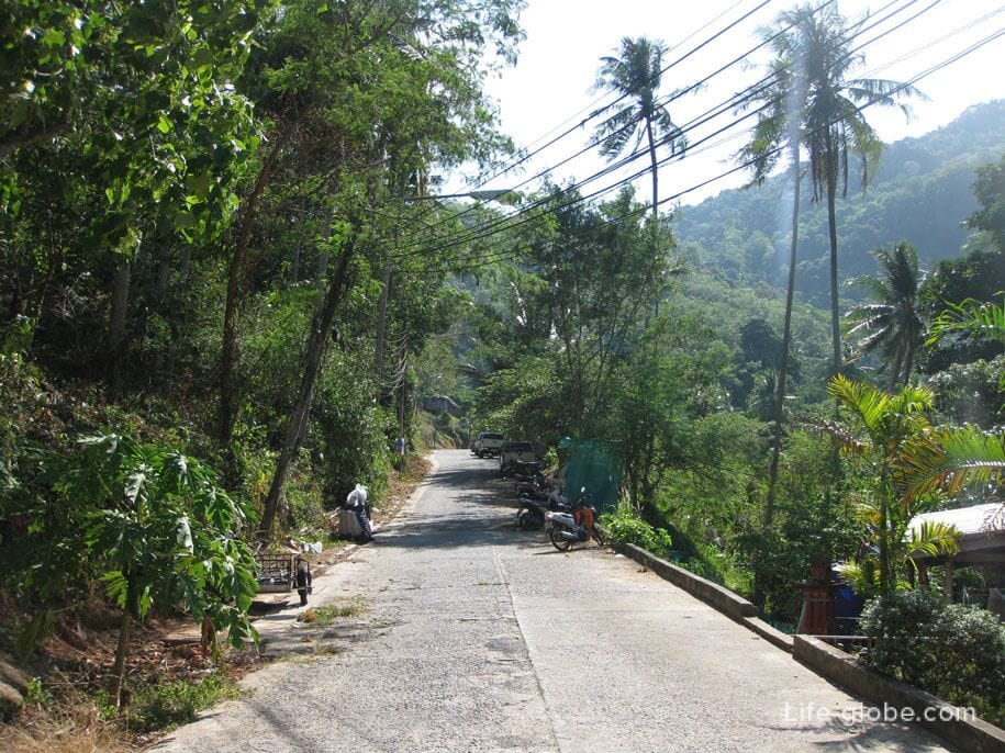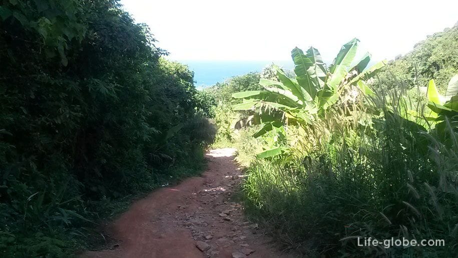 Далее по указателям нужно будет пройти «сквозь джунгли». На карте дорога обрывается, но на практике можно дойти пешком. Дорога грунтовая, но широкая и вполне удобная для пешей ходьбы. По пути встречаются дома местных жителей и арендующие жилье туристы.