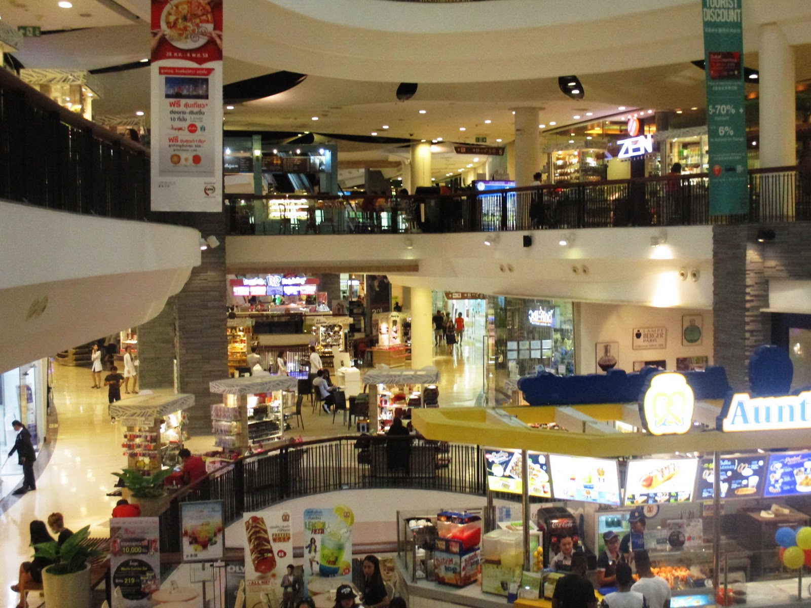 Со 2 этажа Флоресты через переход можно пройти в «Централ Фестиваль». Попадая сюда сразу ощущаем другой темп – больше людей и больше магазинов. К слову, поход в торговый центр для тайцев – особый ритуал досуга, обычно семьи проводят здесь все свои выходные. В «Централ Фестиваль» есть и кинотеатр, и кафе, и магазины, и даже салоны красоты вперемежку с банками. Зашёл и можно не выходить целый день.