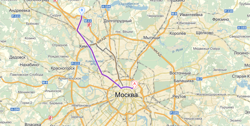 - Двигаясь прямо по улице Тверская-Ямская через 1 км 300 м выехать на Ленинградский проспект.