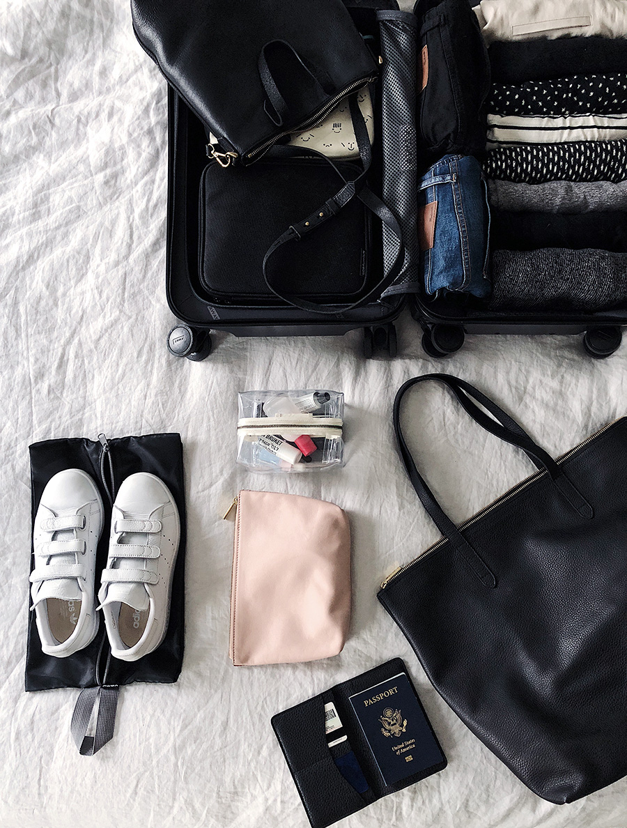 Классическое правило «3-х пар» — одна удобная/спортивная пара для перелета и долгих прогулок (кеды, кроссовки), одна неспортивная пара без каблука (балетки, сандалии, удобные ботинки и т. п.) и одна пара на каблуке для night out ситуаций — поможет определиться с выбором обуви в поездку.