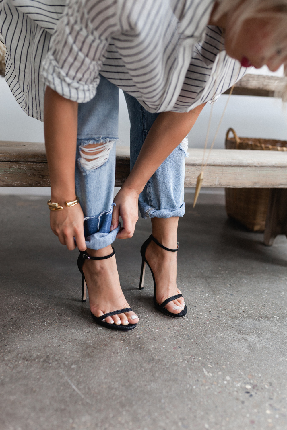 Классические босоножки на каблуке «2 ремешка» не только станут простым способом сделать более статусным любой набор базовых вещей, но и не займут много места и не добавят много веса. Самое главное — найти пару с хорошей колодкой, в некачественном исполнении такие босоножки станут орудием пытки.
