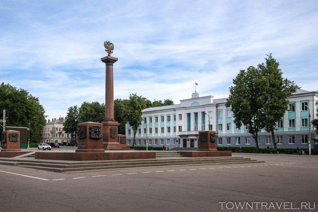 Администрация в Великих Луках и стела «Город воинской славы». Адрес: пл. Ленина, 1