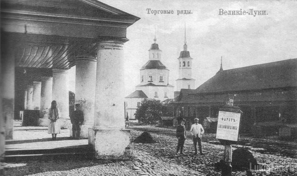 Торговые ряды и Троицкая церковь на Торговой площади (нынешняя площадь Ленина) в Великих Луках