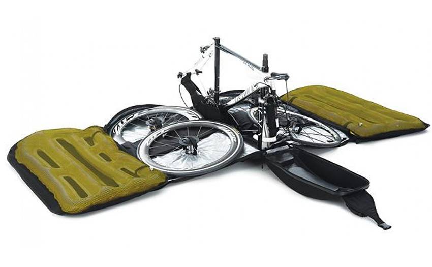 Это сумка для перевоза велосипеда. Конструкция этого средства состоит из надувных мягких стенок, которые предохраняют велосипед от повреждений. Благодаря, тому, что она очень легко складывается до компактных размеров, ее очень легко использовать и переносить.