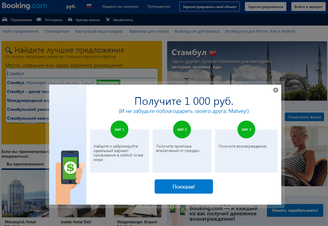 6. При поиске и бронировании отеля на Booking.com не забывайте о том, что каждый раз заходить на него нужно по своей кэшбэк-ссылке.
