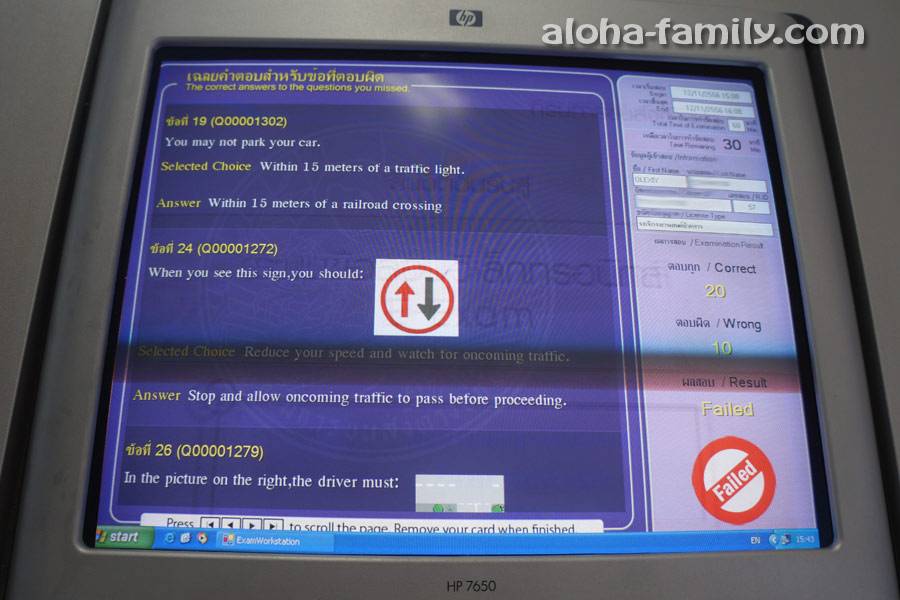 В блогах я встречала часто упоминание, что перед теоретическим тестированием, есть еще тесты на скорость реакции, измерение угла зрения и т. д. На Пхукете мы не сдавали эти тесты, но другая группа выборочно сдавала тесты на скорость реакции.