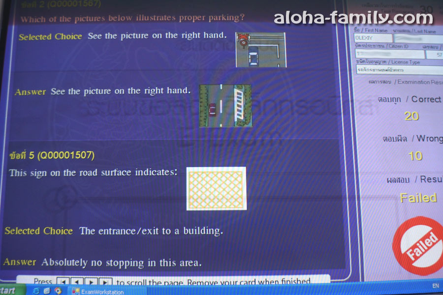 Самое сложное из всего процесса получения прав — сдать теорию на компьютере. Вы можете прекрасно знать правила дорожного движения, замечательно ориентироваться в знаках, дорожной разметке и иметь прекрасные водительские навыки, но сдать теорию на тайском английском — не так и просто без специальной подготовки. Тем более, что в билетах попадаются откровенные ошибки и довольно странные формулировки с точки зрения английского языка и здравого смысла.