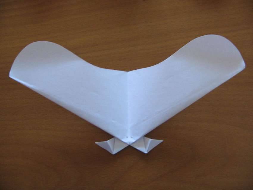 - Подгибаем немного концы крыльев для получения так называемых винглетов. Затем расправляем крылья так, чтобы они образовали с фюзеляжем прямой угол.