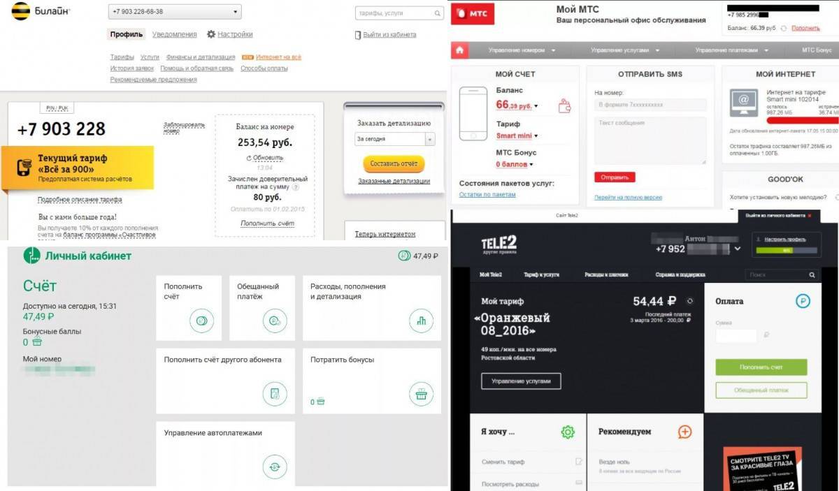 Название и расположение меню в личном кабинете разных операторов индивидуально, но разобраться в его особенностях не составляет труда.