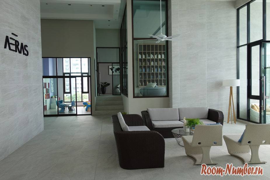 И это еще не все, чем смог порадовать Aeras condominium. Огромный зал с мягким диваном и креслами, откуда открывается умопомрачительный обзор на пляж Джомтьен.