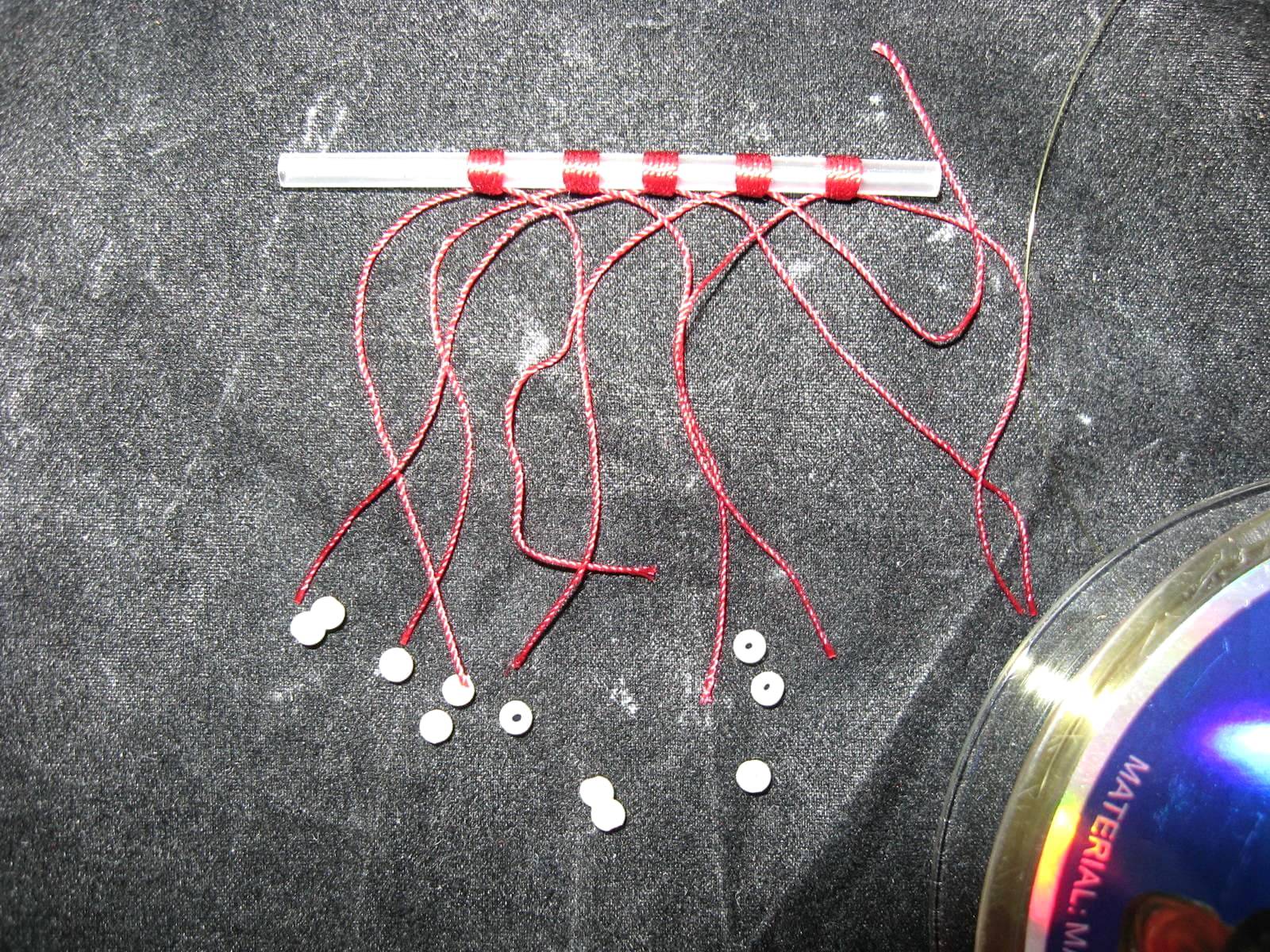 - Сложите нить пополам.