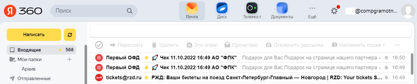 Рис. 5. Письма о возврате билета на сайте РЖД.