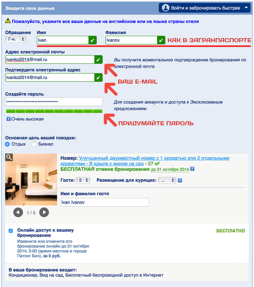 Разберем на примере популярного онлайн-сервиса Booking как заполнить все поля.