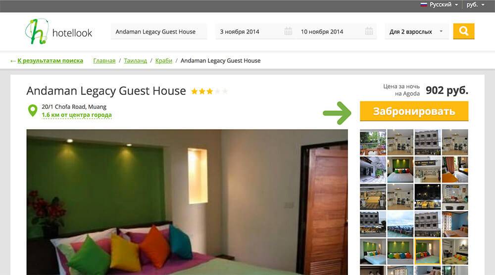 7) Далее переходите в выбранную систему бронирования, выбираете нужный номер и нажимаете «Забронировать».