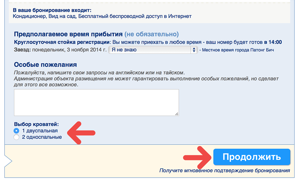 Выбрали? Отлично! Теперь проверяем даты, количество людей в номере, жмем «Забронировать» и попадаем на следующую страницу, где нужно заполнить форму. Не пугайтесь, тут все очень просто