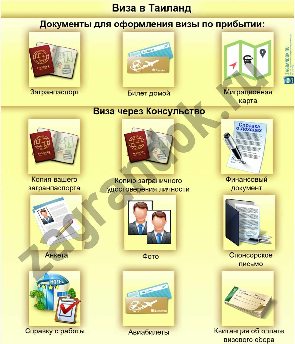 - наличие достаточного количества денег для пребывания в стране (от 10 тысяч бат или более на человека или от 20 тысяч бат на семью) на двухнедельный период;